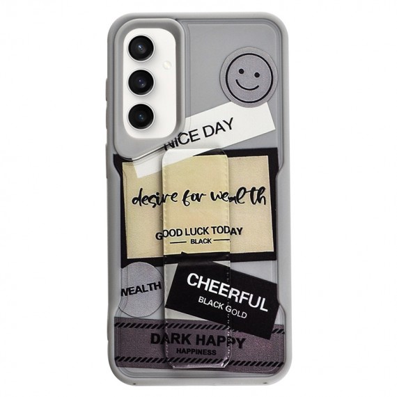 قاب-سامسونگ-چرمی-استندشو-طرحدار-dark-happy-طرح-happinessقاب سامسونگ s23 fe چرمی استندشو طرح Happiness