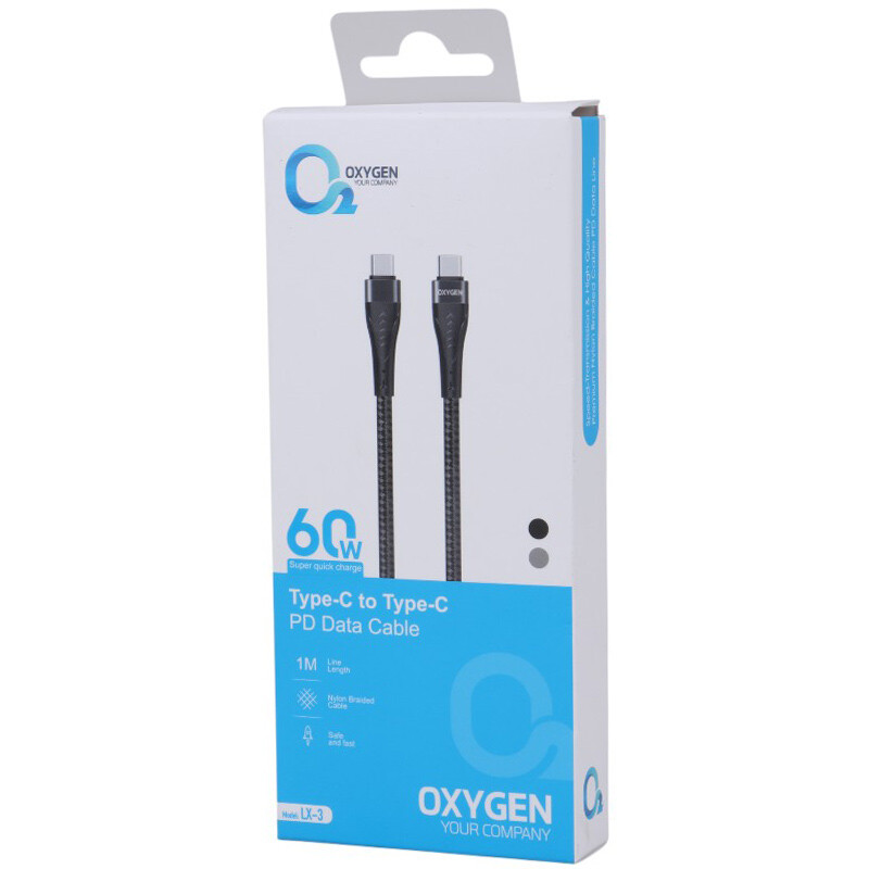 کابل تبدیل فست شارژ Oxygen LX-3 Type-C to Type-C PD 5A 60W 1m